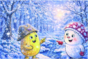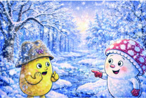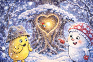 Stell dir vor: Du gehst mit deinem Kind früh am Morgen in den Eichenwald. Alles funkelt. Gräser tragen glitzernde Häubchen, die Äste der Eichen wirken wie mit feinen Diamanten bestäubt. Genau so starten Tobi, der kleine fliegende Steinpilz aus „Aufregung im Eichenwald“, und seine Freunde – die Vögel, der neugierige Igel und das flinke Eichhörnchen Karli – im Winter in ihren Tag. „Was ist das, dieses Funkeln?“, fragt Karli. Tobi schwebt näher heran und pustet vorsichtig über ein Blatt – kleine Eiskristalle schmelzen und zeigen: Das ist Frost!