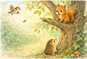 In „Aufregung im Eichenwald“ lernt Tobi, dass Helfen nicht immer sofort Eingreifen heißt. Manchmal bedeutet es, klug zu beobachten – genau das kannst du deinem Kind jetzt zeigen.