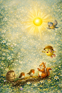 Vielleicht hast du dich schon gefragt: Warum erwachen Tiere gerade im Frühling? Die Antwort steckt in drei kleinen Wörtern – Licht, Wärme, Futter. Die warme Sonne ist wie ein Wecker, der allen sagt: Aufstehen, es geht los! Wenn es heller wird, spüren Tiere, dass wieder Zeit für Bewegung, Futtersuche und Familienleben ist. Mit der Wärme wachsen Pflanzen, krabbeln mehr kleine Insekten herum und es gibt wieder Samen und Nüsse zu finden. Warum ist das wichtig? Ohne ausreichend Licht und Nahrung könnten die Tiere keine Reserven auffüllen, keine Nester bauen und keine Jungtiere großziehen – der Frühling ist also der Startschuss für ein neues, fröhliches Waldjahr. Auch in Aufregung im Eichenwald siehst du, wie gut Freunde zusammenarbeiten – ganz ohne, dass die Geschichte vom Frühling, Herbst oder Winter handelt. Freundschaft funktioniert zu jeder Zeit.