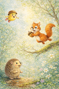 Wenn im Wald die Sonne wieder länger scheint und der Boden langsam warm wird, kommt Bewegung ins Leben der Tiere im Frühling. Genau jetzt werden Igel, Eichhörnchen und Vögel aktiver: Die Tage sind heller, die Luft ist milder, und überall gibt es wieder mehr Futter. Warum ist das wichtig? Weil diese Tiere jetzt Energie sammeln, Nester bauen, ihre Jungen versorgen und damit den Wald im Gleichgewicht halten – ein lebendiges Miteinander, das du und dein Kind sogar vor der Haustür beobachten könnt. In meinem Kinderbuch Aufregung im Eichenwald triffst du Tobi, den kleinen fliegenden Steinpilz, und seine Freunde – Igel, Eichhörnchen und Vögel. Die Geschichte selbst erzählt nicht von Jahreszeiten, zeigt aber, wie Freundschaft, Mut und Zusammenhalt den Wald so besonders machen.