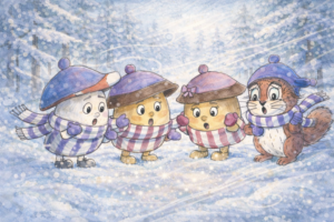 Damit du die Winterwunder ganz leicht im Alltag erklären kannst, hier ein paar kurze Ideen – inspiriert von Tobis Abenteuergeist aus „Aufregung im Eichenwald“ (auch wenn die Geschichte selbst keine Winterepisode hat):